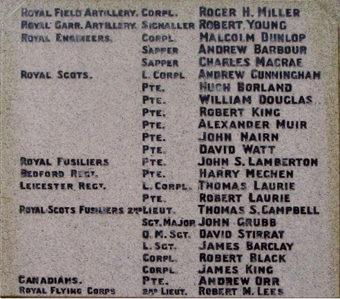Tom advised that James was born in Stewarton in 1896 and signed up in 1914 when he was only 17, to his father’s dismay. He drew the Army’s attention to James being underage which led to him being sent to Signalling School in Rumbling Bridge near Dalkeith. He excelled there and was kept on teaching signalling, and he became a proficient marksman and a keen footballer. This led to his promotion to the rank of Corporal and a posting to Chelmsford before being sent to France in 1918 with the 1/4th Battalion, Royal Scots Fusiliers. As a battalion signaller, Barclay would have been busy at the front laying field telephone cables from battalion HQ back to brigade and forward to company HQs in their assembly trenches; checking and repairing lines under shellfire, as breaks were constant in this heavily bombarded sector, and issuing and testing signal lamps, flags, and heliographs.